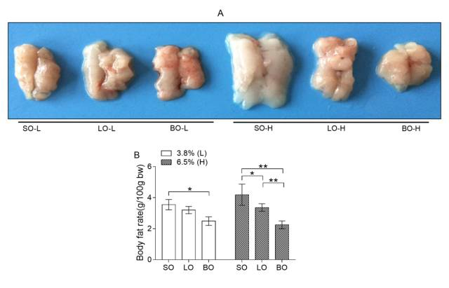 其抗肥胖机理,研究人员还从分子层面给出了答案:吃豆油,会加速脂肪细胞的分化和脂质沉积,脂肪细胞体积增大从而引起肥胖;吃猪油,脂肪细胞的分化和脂质的分解能力都加强,体脂率有所增加,但脂肪细胞内的脂质含量相对较低,脂肪细胞体积没有显著变化;而吃豆油和猪油调和油,不仅减少脂肪细胞分化和数量,减少脂质沉积,而且加速脂肪动员,极显著降低体脂率!