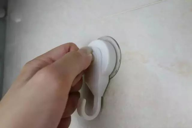 把吸盘挂钩按压在墙壁上