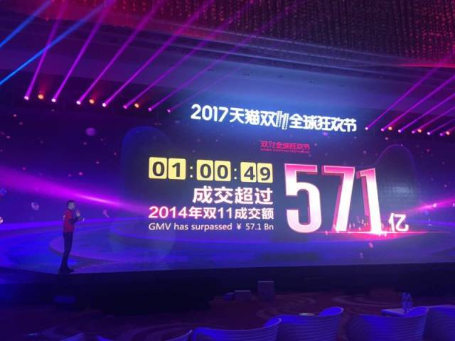 一小时之后的1点0分22秒,交易额达571亿!相当于2014年双11全天的成交额。