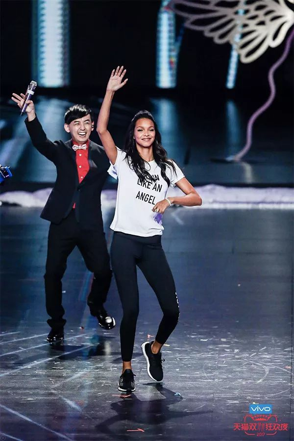 巴西籍维密天使Lais Ribeiro与维秘超模何穗一同来打 call,凉爽大长腿啊!满屏都是网友再喊:一年都不够啊!