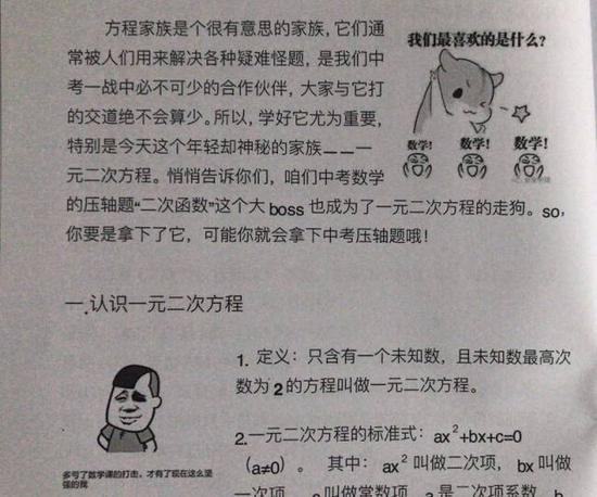 为了减轻大家学习数学的枯燥感,《共享中考》还加入了有趣的提神表情包和数学知识。
