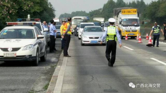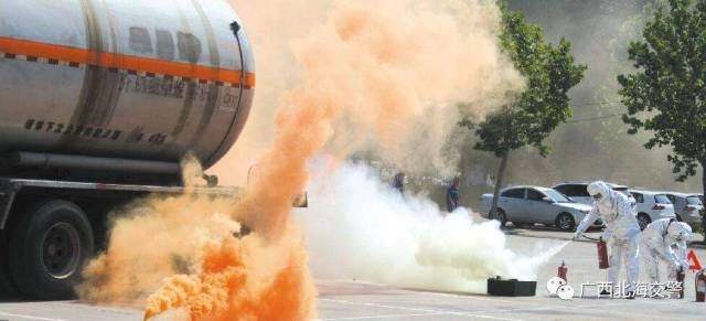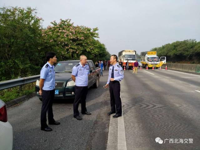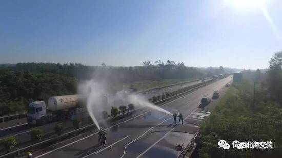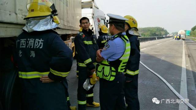 接警后,北海交警部门立即启动紧急处置预案,及时前往现场,并及时与消防、安监、公安、环保、高速公路运营公司、养护部门、高速公路路政执法大队等相关部门联系,共同开展事故救援工作。