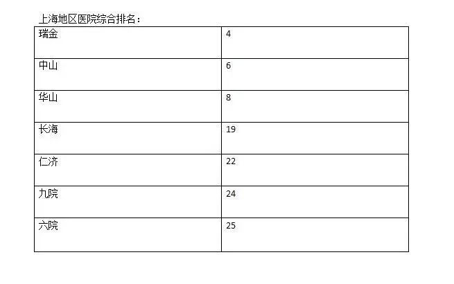 收藏 | 中国医院及专科声誉排行榜出炉!上海3医院进入医院榜前十