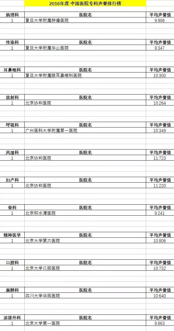 这也是复旦大学医院管理研究所连续第8年发布榜单。(更详细榜单参见复旦大学医院管理研究所网站,点击链接可查看☞2016年度专科排行榜)