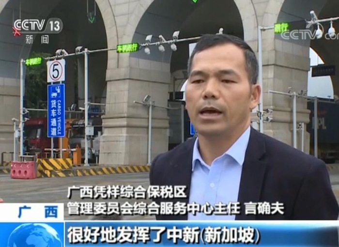 广西凭祥综合保税区管理委员会综合服务中心主任 言确夫:货运专用通道的开通,很好地发挥了中新(新加坡)互联互通南向通道的重要节点作用,促进了中国与东盟国家的贸易发展和文化交流。
