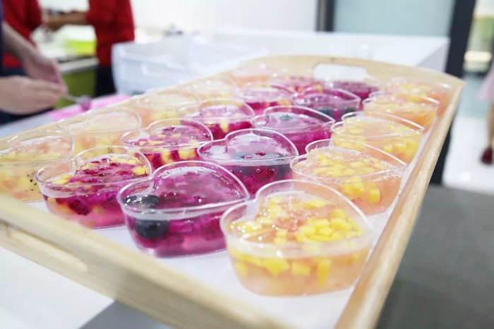 △安利纽崔莱讲师讲解皮肤水润的魔法,并现场教网友们制作肌源果冻。