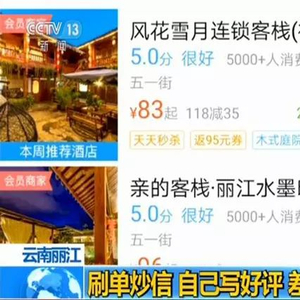 日前发布的新《反不正当竞争法》,对电子商务领域虚假宣传行为做了明确规定,经营者采用刷单、炒信、删除差评等方式,帮助自己或其他经营者进行虚假宣传或引人误解的商业宣传,将受到严厉处罚。而记者发现,在云南丽江,就有不少客栈实行网络刷单,自我提升满意度评价,利用网络虚假宣传误导消费者。