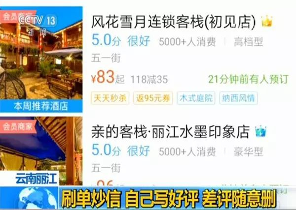据业内人士介绍,丽江古城的新开客栈一般都要通过刷单来提升排名,连续刷单15天左右就能排到前面。