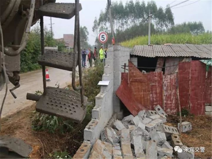 面包车乘客韦某某心有余悸的向民警说:“车上6人都是我家里人,开车的是我弟弟,这辆搅拌车撞到我们的车后,一路将我们顶向路边,然后围墙就倒了。”