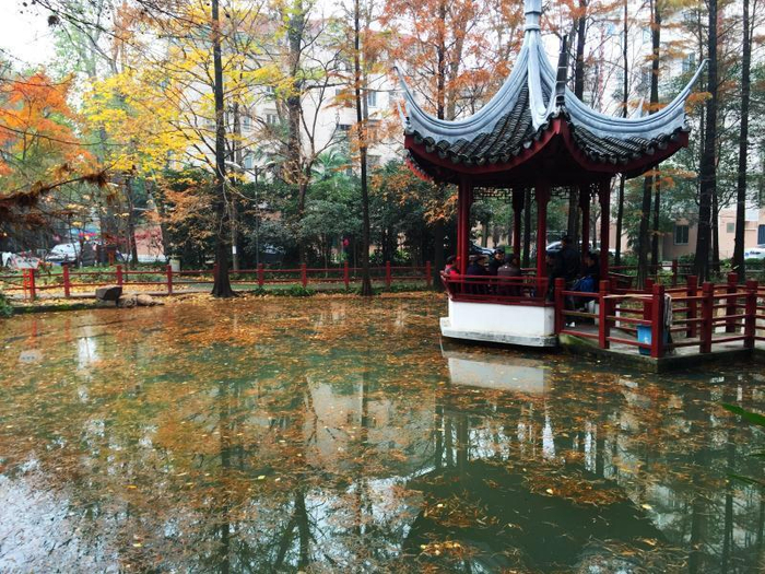 泉园门口立着一块大石头,上面是古建筑学家陈从周先生所提的“海上第一泉”。中午时分,许多老居民趁着阳光温暖,纷纷到这里休憩,在湖边小广场打一套太极拳、到湖心亭和老朋友一起唱唱小曲,还可以绕着新建的健身步道慢跑锻炼。