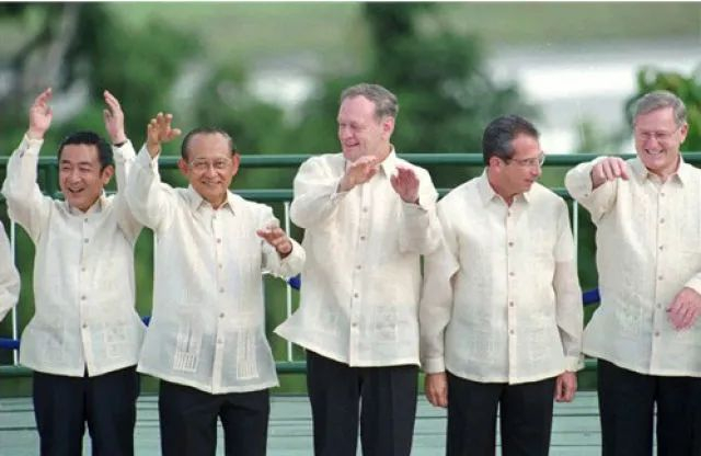 时任印尼总统苏哈托赠送每位领导人一件巴提克——一种蜡染印花衬衣。