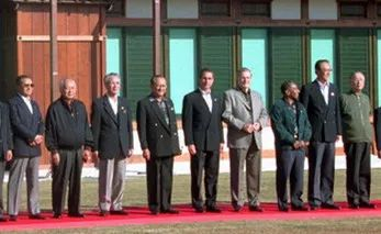 时任印尼总统苏哈托赠送每位领导人一件巴提克——一种蜡染印花衬衣。
