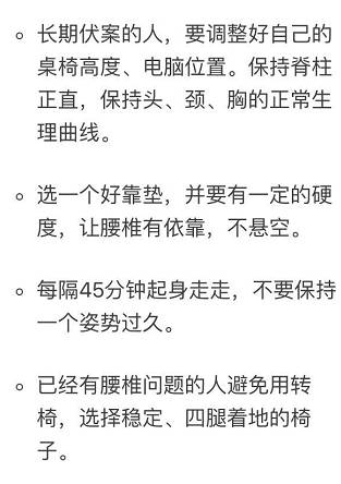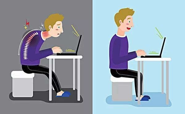 办公室一族的坐姿多是耸肩、含胸、身体前倾,大大加重了脊柱尤其是腰椎的负担。