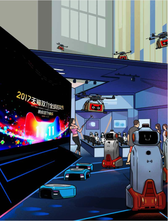 大量智能机器人组成的“新物种”军团,在这一背景下应运而生,它们比人类更加善于应对复杂、庞大的体系。这些机器智能“新物种”,已经渗透到天猫双11全球狂欢节的各个角落,从挑选货品、导购推荐、客服、设计海报、巡逻机房到管理仓库……它们开始和人类一起,协同完成双11的各项任务。