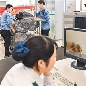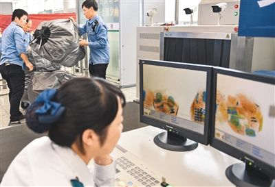 ↑为应对“双11”货运高峰,广铁集团携手电商和快递企业,从11日起连续10天每天开办35趟始发和24趟终到高铁快运业务。图为深圳北站的工作人员搬运已经通过安检的快递包裹。新华社记者 毛思倩摄