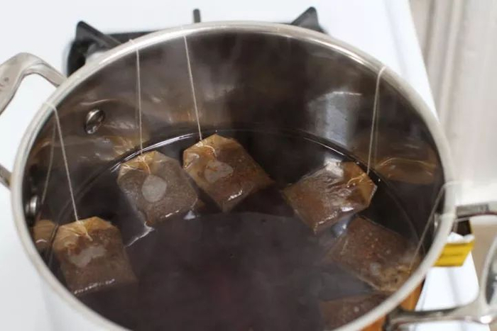 厨房餐厅里的地板,经常沾满油污。用泡完茶的剩余茶包加热,煮成茶叶汁,用它拖地去油污除尘效果特别好。