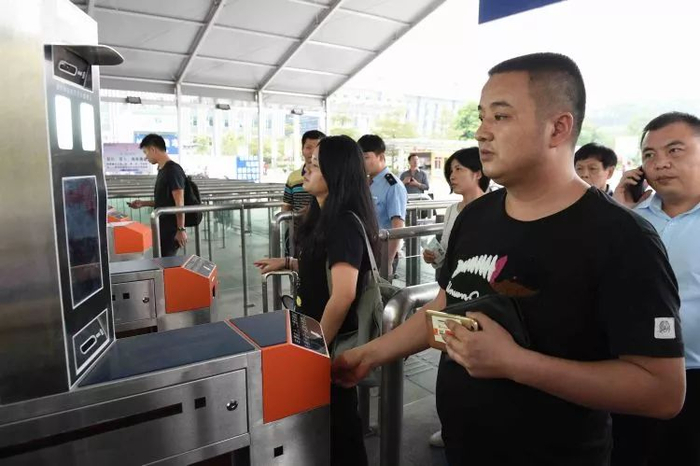通过互联网订票未换取纸质车票的旅客,可直接将身份证放置扫描口,听到语音提示后,抬头面对摄像头,“刷脸”验票即可完成,成功后第一、二道闸门将陆续自动打开。