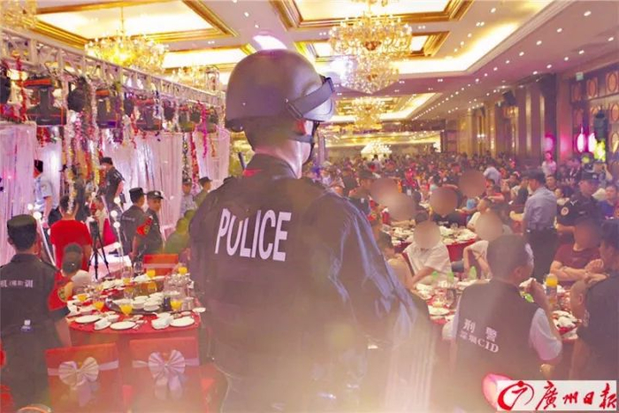 广州日报深圳11月11日消息,6月的某个晚上,深圳宝安区某酒店内灯红酒绿、觥筹交错,一帮涉黑团伙骨干齐聚为一位“大佬”的新婚庆贺。突然,大批民警从天而降。这帮“大佬”一开始还以为是“助兴节目”,纷纷举起手机拍照。然而,很快他们就知道自己错了。