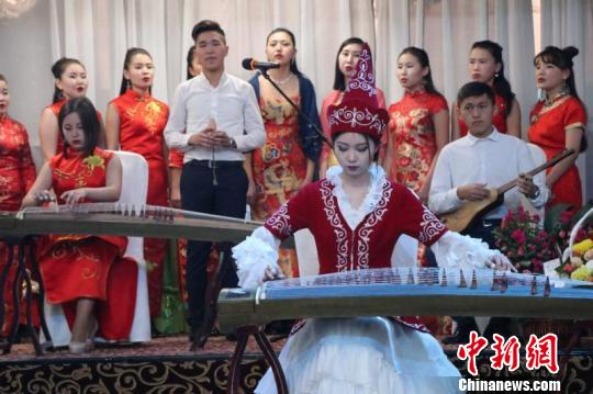 吉尔吉斯斯坦国立民族大学孔子学院师生表演《吉中友谊歌舞乐展演》。 胡嘉琛 摄