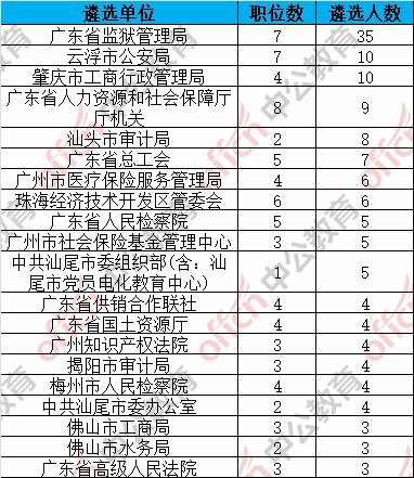 招副主任科员以下的有7个职位,遴选单位包括广东省体育局、广东省人民政府港澳事务办公室、广东省机构编制委员会办公室等单位。