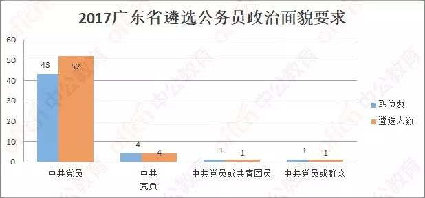 2017广东省遴选公务员考试政治面貌要求的职位有49个,占总职位数的17.1%。不限制政治面貌的职位有238个,占总遴选人数的84.5%。