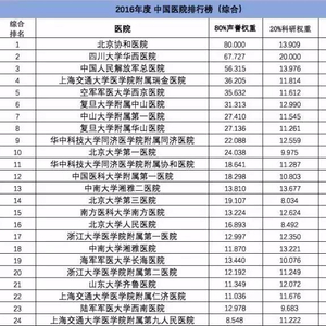 2016年度中国医院排行榜(综合)