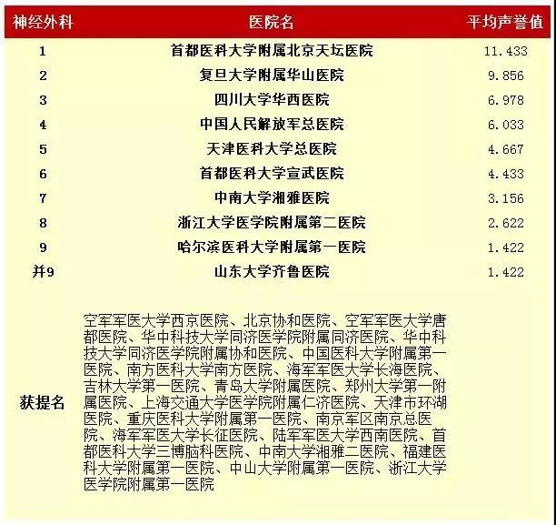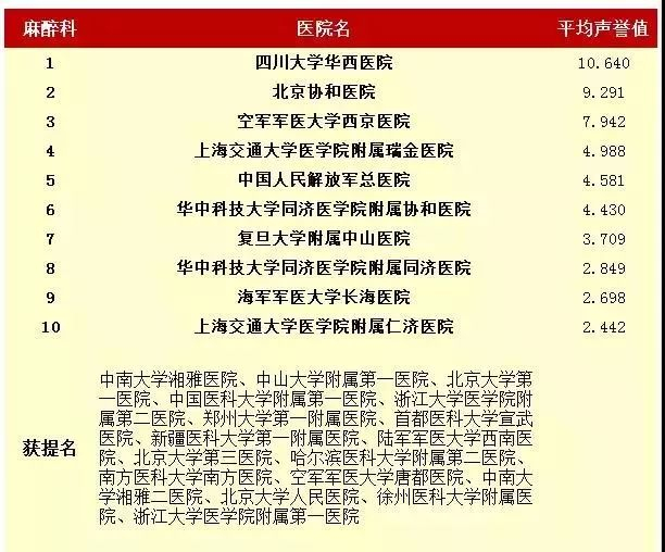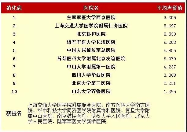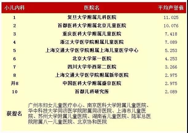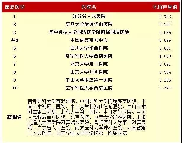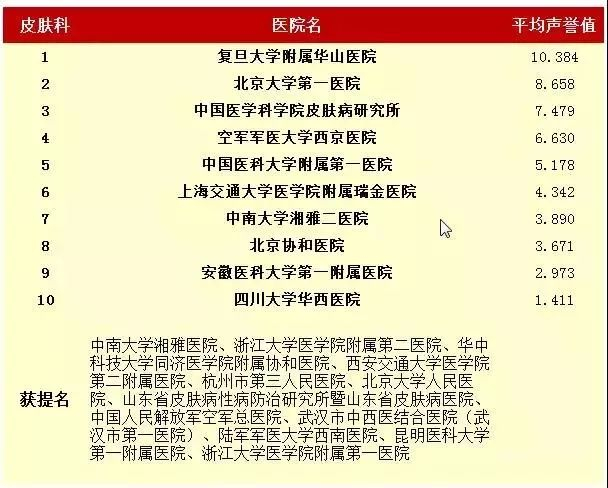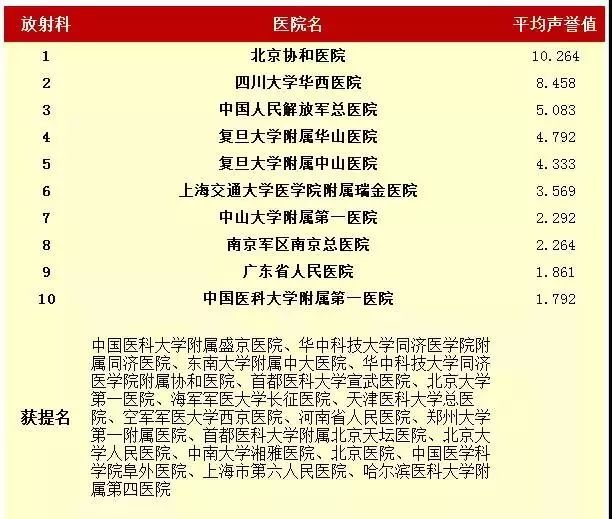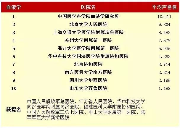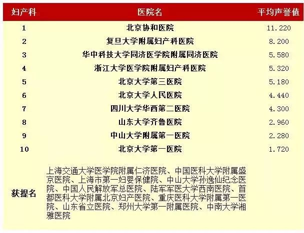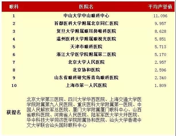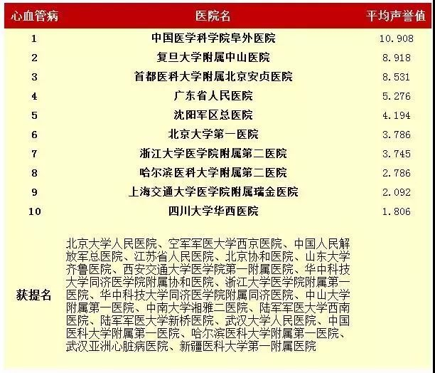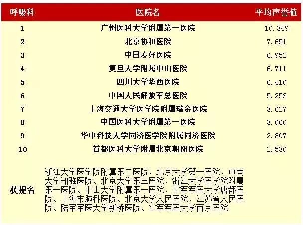 2016年度中国医院专科声誉排行榜(专科汇总)