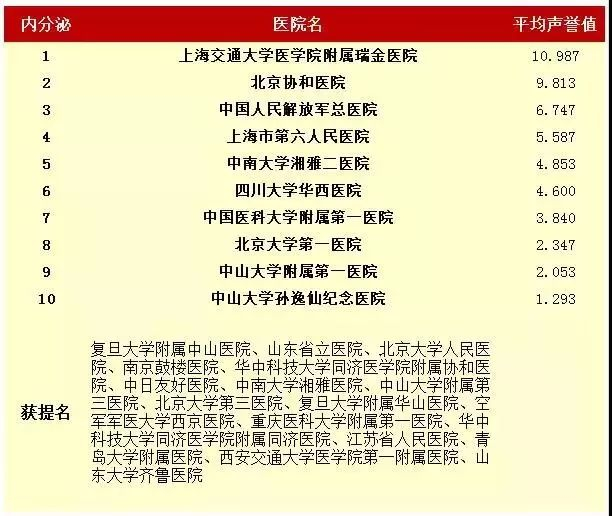 复旦大学医院管理研究所从2010年开始,每年推出上一年度的《中国医院专科声誉排行榜》和《中国医院排行榜》,其评审专家来自中华医学会和医师学会,涉及37个临床专科,向4173位专家发挂号信,收到有效回执2657份(每年有所变动)。
