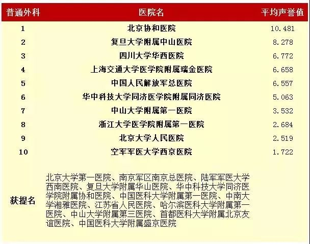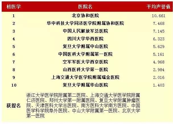 在入榜的100家医院中,有37个是专科医院,北京协和医院、四川大学华西医院、中国人民解放军总医院继续名列前三甲。