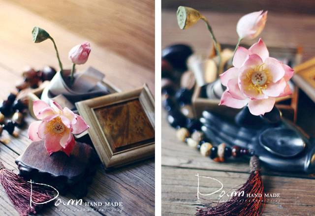 罗丹却坚持一点一点地细心雕琢打造,刻意用剪刀把每一片花瓣修剪成各自不同的样子。她不眠不休,终于在一周内完成所有作品,她说,只有这样做出来的翻糖荷花才会有灵气。