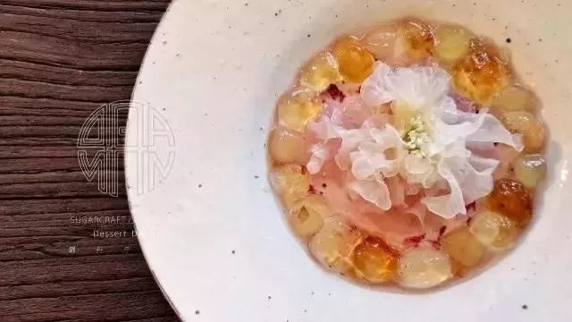 她把袭人用来安抚宝玉的玫瑰卤子做成珀。柔软的银耳、粉润的桃胶加以玫瑰花瓣的点缀,粉红如春。这一道美如画的甜品,让人不忍心破坏。