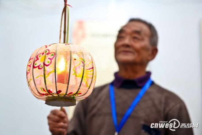 朱保强15岁开始跟着父亲学习做灯,一做就是50年,早已经娴熟的掌握了竹纱灯的制作技艺。在陕西传统手工技艺大展的现场,他会时不时的给现场观众露一手。竹条在他手上灵活的翻转着,锯竹圈,划竹篾,扎灯笼,糊皮纸等20多道工序有条不紊的进行着,很快一盏竹纱灯便制作好了。