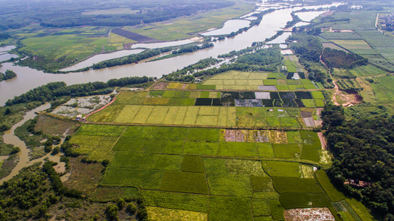 ▲育种基地位于河口地带,涨潮时就会出现海水倒灌情况,是天然的海水稻培育基地。新华社记者张若玄摄