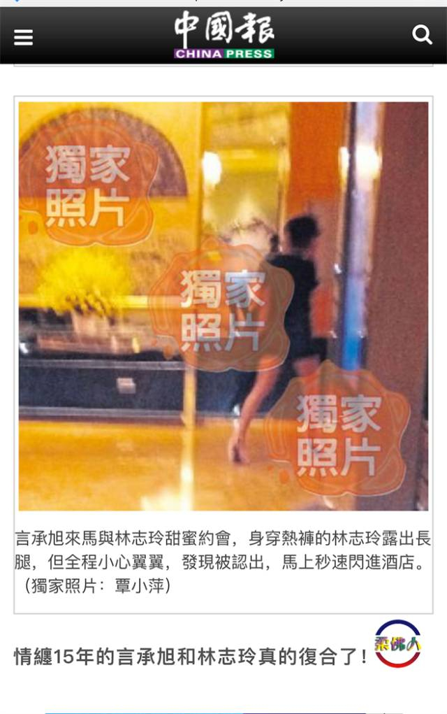 事实上,林志玲9日在脸书留言已透露行踪:“Malaysia巧遇阳光。”林志玲经纪人范清美稍早证实林志玲确实在大马。据言承旭密友表示,言的确也在吉隆坡。