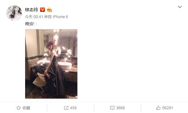 就在12日凌晨,林志玲在微博上晒出一张美照。