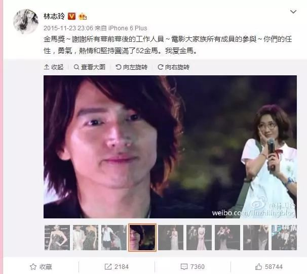 2015年金马奖颁奖礼上,林志玲化身“林真心”和言承旭隔空同框,引发一阵复合浪潮。