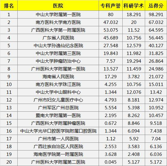 在华南区排名中,排前20名的医院有15家位于广州,充分显示了广州作为华南地区医疗重镇的地位。