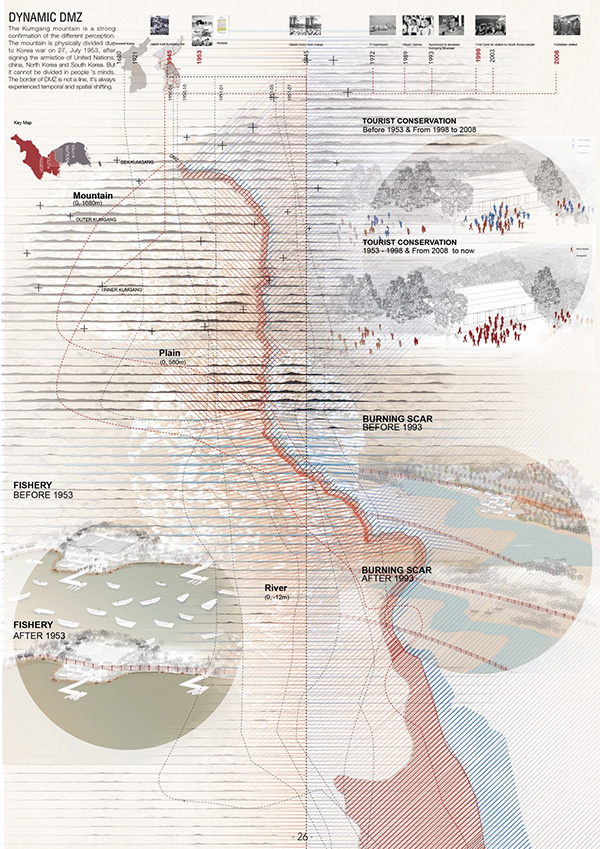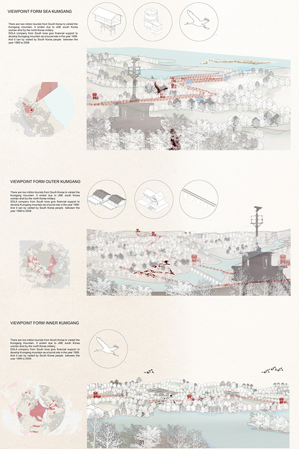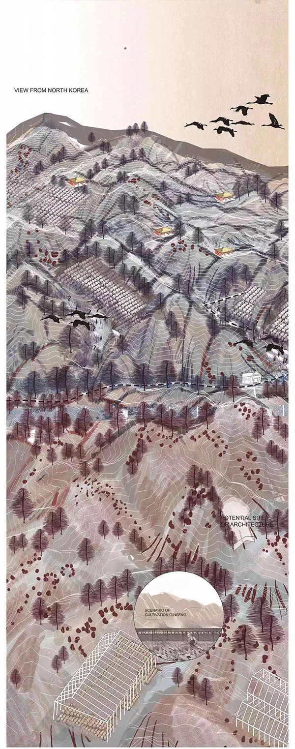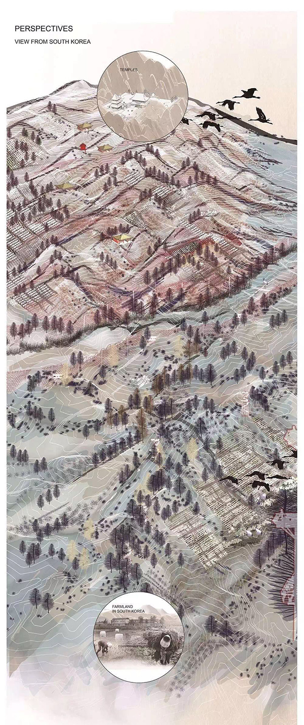 其实,毕设第一次评图时,老师都很好奇,问我是否是韩国人,当我说既不是韩国人也不是朝鲜族时,他们都非常纳闷,为什么我会选择韩朝边境的区域做毕业设计。