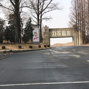 在朝鲜的第二天,按照旅游计划路线,我们来到了朝鲜板门店的朝韩非军事管制区域。由于朝鲜的柏油路是自己国家生产的,基础设施相对不那么好,开车大概四小时才到了目的地。导游喊醒了我们,开始讲解朝韩边境发生的事情。我对于政治故事没什么兴趣,直到导游讲到一座山的时候,我一下子清醒了。