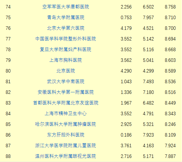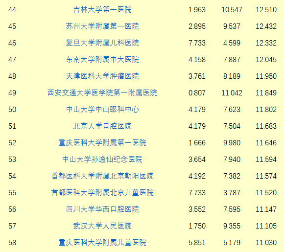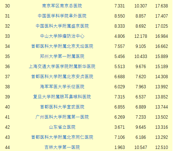 综合考虑全国各医院的学科建设、临床技术、医疗质量、科研水平等关键因素后,列出每个专科前10名的医院。