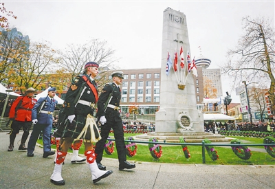 温哥华纪念国殇日 工人日报 2017.11.1306:12 关注 11月11日,军人在加拿大温哥华参加国殇日纪念活动。 11月11日是加拿大荣军日,也叫国殇日,以纪念在第一次世界大战中在欧洲战场上死难的加拿大士兵。后来在这一天,人们也开始纪念在历次战争中阵亡的将士。 新华社发(梁森摄)