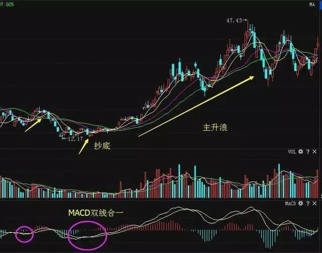 1.稳健的操作方法是:当DIF线与DEA线在0轴下方开始黏合的时候,就慢慢进场吸纳。