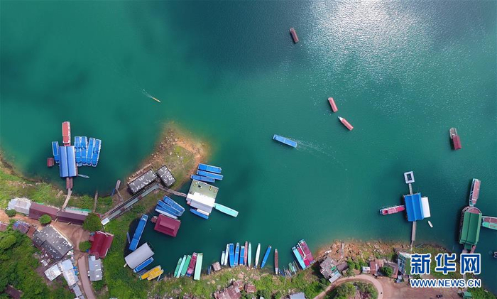这是2016年8月8日在老挝万象省拍摄的南俄湖。南俄湖位于南俄河下游,距离首都万象约80公里。湖中有数百座小岛,景色怡人。新华社发(刘艾伦 摄)