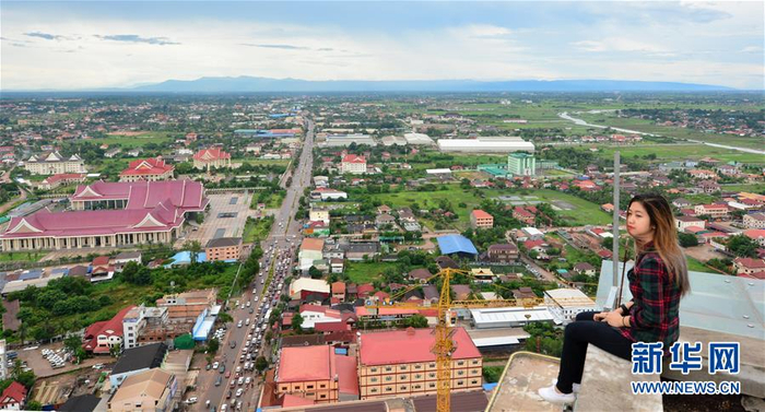 这是2017年8月9日,在老挝首都万象,一名女孩坐在楼顶看风景。老挝人民民主共和国是位于中南半岛北部的内陆国家,北邻中国,南接柬埔寨,东界越南,西北达缅甸,西南毗连泰国。首都万象为老挝政治、经济和文化中心。新华社发(刘艾伦 摄)