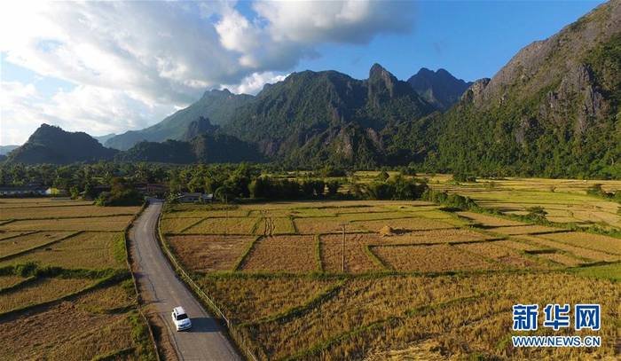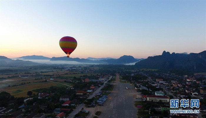这是2016年11月19日航拍的老挝万荣风光。位于老挝首都万象以北约150公里处的万荣是老挝知名的休闲旅游胜地,它坐落于南松河畔,以喀斯特地貌闻名,风光秀丽。新华社发(刘艾伦 摄)