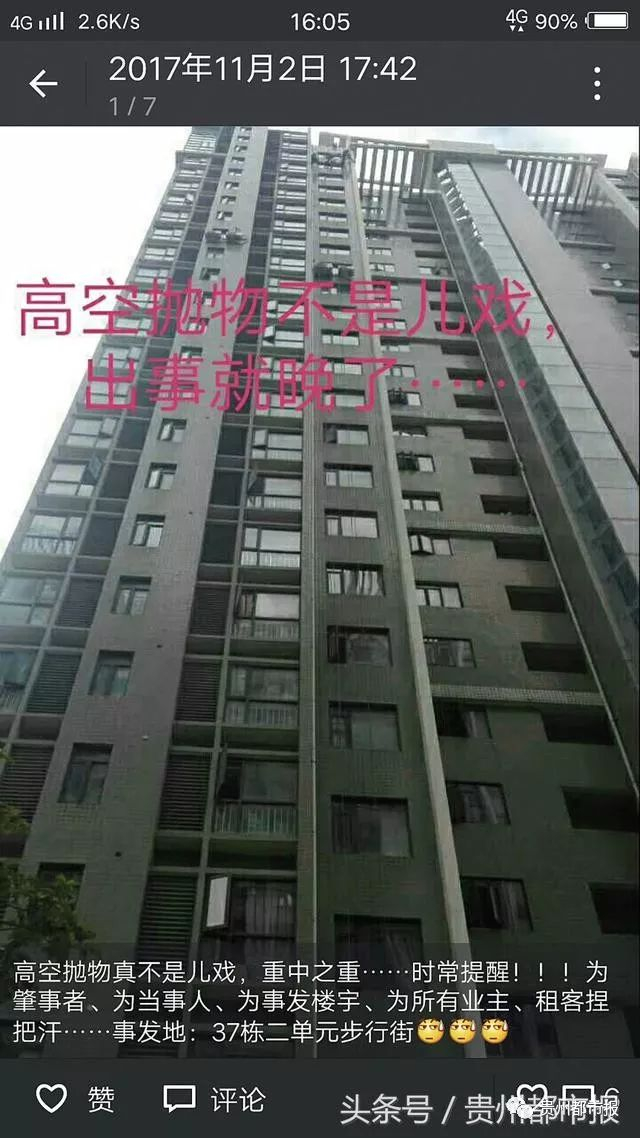 高楼上扔砖头 就砸在她前方 贵阳世纪城龙辉苑37栋频现高空抛物