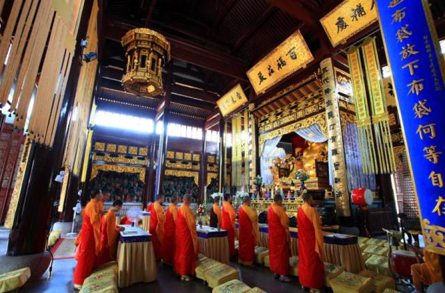 雪窦寺里,还有僧人们每天必不可少的早课,他们一天又一天地念诵着充满人生哲学的弥勒佛教经典,让前来游玩的游客听之顿觉心静了许多。