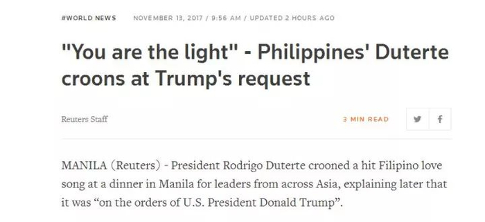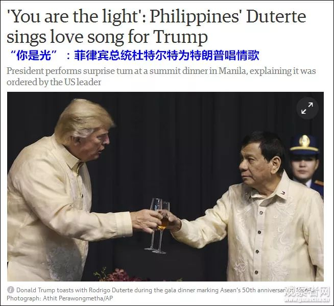 围观 | “你是我世界的光,我心另一半”!昨晚,杜特尔特向特朗普唱了首情歌