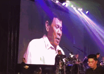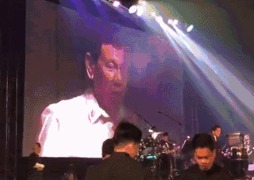 杜特尔特深情款款地唱完了歌,结束时,他说:“我不请自来唱了这首歌,这是美国总统要求的。”说完还摊了摊手……