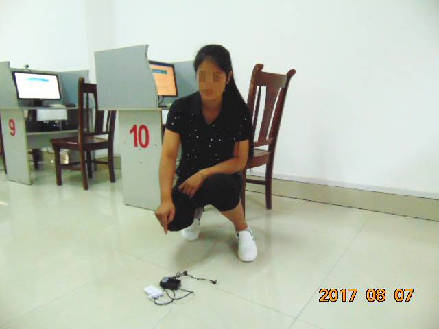 8月7日上午9时40分许,在南宁市上林县公安局交通管理大队无纸化科目一考场内,巡考民警抓获一名利用高科技设备工具作弊的女考生。